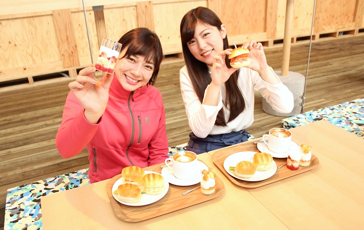 You just have to try sweets made with Hokkaido ingredients such as blue honeysuckle, corn and melon. Take them with you and enjoy them outdoors! Don't forget to drop in for other treats like double-layered cheesecake with a cow print, rich soft-serve ice cream, and baked items to take home as souvenirs.
