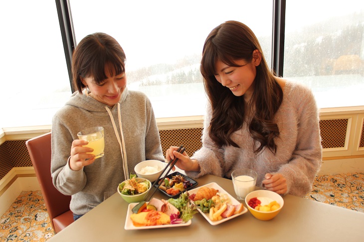 Restaurant Platinum is on the 32nd floor, right at the top of RISONARE Tomamu. Enjoy a fine breakfast while admiring the snowy landscape.