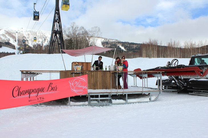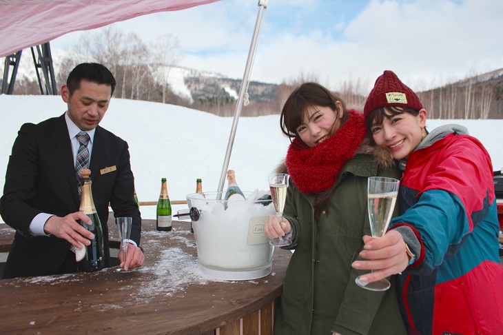 Dressed in a suit, the bartender will serve you the drinks to add to the atmosphere. The weather gradually warms in March, and on sunny days during the month this is the only place where you can sip champagne with a great view of the nature that surrounds Tomamu!