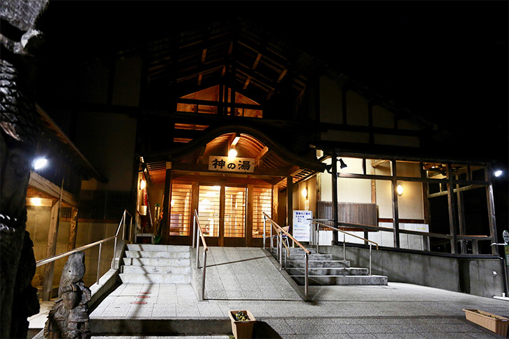 Established about 400 years ago, Togatta Onsen has two public bathhouses in the town center. One of them, the popular Kami no Yu, is situated in a charming building right behind the tourist information center. This onsen (hot spring) allows day visitors to take a bath for just 330 yen. The temperature of the source of Togatta Onsen is said to be 70 degrees Celsius. Although the temperature of bath water depends on the hotel, the water in the “scalding” bath, which Kami no Yu provides along with a “lukewarm” one, is very hot, at 44 degrees Celsius. It's a good idea to pour lukewarm water over your body several times to get used to the temperature, and soak in the lukewarm bath first. Legend has it that Togatta Onsen is effective against diseases of the legs.